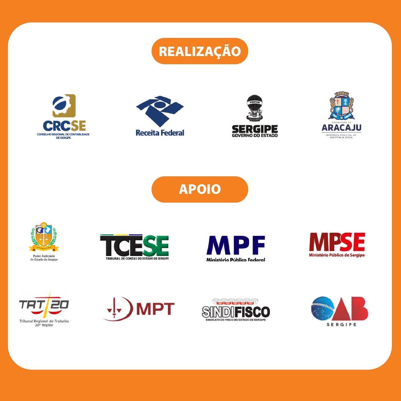 A Campanha Destinar é uma realização do Governo de Sergipe, da Receita Federal em Sergipe e do Conselho Regional de Contabilidade de Sergipe, com o apoio da Prefeitura de Aracaju e diversas entidades.