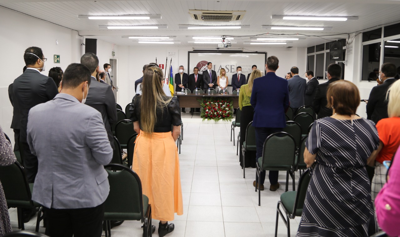 O Presidente do Poder Judiciário de Sergipe, Desembargador Edson Ulisses de Melo, recebeu na manhã desta segunda-feira, 11/04, um Diploma de Honra ao Mérito do Instituto dos Advogados Brasileiros (IAB). A honraria foi entregue pela Presidente Nacional do IAB (gestão 2020-2022), a Advogada Rita de Cássia Cortez. À noite, na Fanese, no bairro Industrial, o Presidente do TJSE participou da inauguração da sede do Instituto da Advocacia de Sergipe (IASE), que tem como Presidente o advogado Sandro Mezzarano.