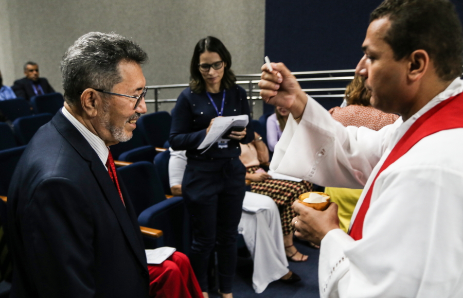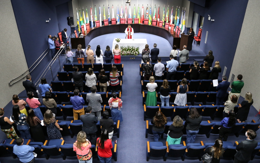 "Quero acolher a cada um de vocês, apresentar as boas intenções pessoais e comunitárias que Deus tem para todos nós. As boas intenções para a realização dos trabalhos que aqui são desenvolvidos. Que esta Casa seja a boa provedora da bem comum e da Justiça; e que possamos labutar para que, em todo tempo, a plenitude de vida representada por Jesus, por seu sacrifício, seja entregue a nós e a todos aqueles que necessitam dos serviços prestados nesta Casa", refletiu o pároco Marcelo Conceição, ao iniciar a cerimônia.