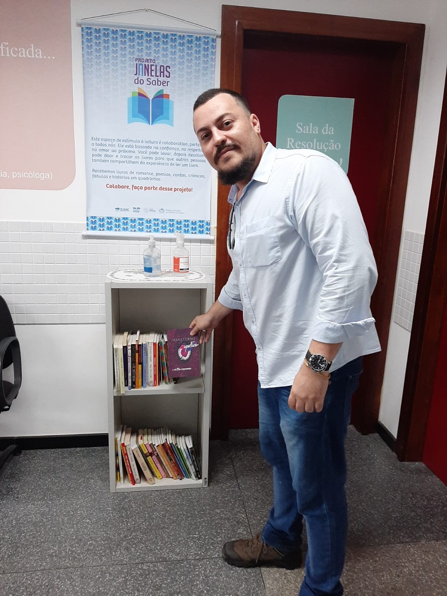 O Projeto Janelas do Saber, desenvolvido pelo Centro Judiciário de Solução de Conflitos e Cidadania (Cejusc) de Aracaju, recebeu uma doação do poeta Victor Fernandes, que levou para o local seu primeiro livro, intitulado ‘Transtorno Poético’. O projeto consiste na disponibilização de livros para os jurisdicionados em estantes dos Cejuscs, contribuindo assim para o incentivo à leitura, além de proporcionar condições ao pleno exercício da cidadania.