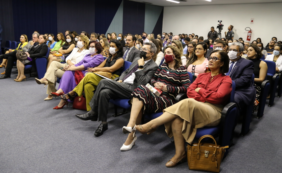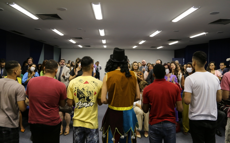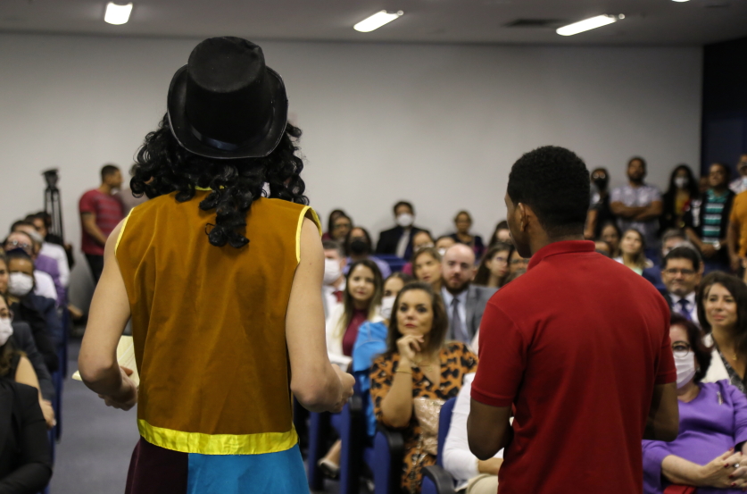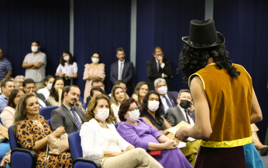 Adolescentes que cumprem medidas socioeducativas apresentaram, logo no início da solenidade, uma peça sobre o Estatuto da Criança e do Adolescente (ECA) e Justiça Restaurativa (JR). Na Fundação Renascer, o Núcleo de Justiça Restaurativa foi institucionalizado este ano. “Mas desde 2017 executamos práticas restaurativas na instituição com os adolescentes que estão cumprindo medidas socioeducativas nas cinco unidades. Desde outubro, também estamos realizando diversos círculos com nossos servidores”, informou Elaine Santana, Coordenadora do Núcleo de Justiça Restaurativa da Fundação Renascer.