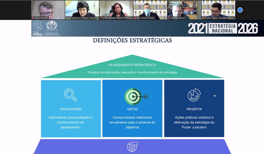 Fazer um balanço sobre o cumprimento de metas nacionais e projetos em andamento no Tribunal de Justiça de Sergipe (TJSE) foi o objetivo da 41ª Reunião de Análise da Estratégia (RAE), primeira de 2022. A reunião, sexta por videoconferência, foi realizada na manhã desta segunda-feira, 06/06, com a participação dos Desembargadores Edson Ulisses de Melo, Presidente do Poder Judiciário de Sergipe; e Ricardo Múcio, Presidente do Comitê Gestor do Planejamento Estratégico do TJSE; além de magistrados e servidores gestores de projetos.