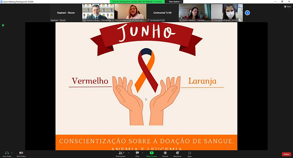 Conscientizar a população para a importância da doação de sangue e diagnóstico precoce das anemias e leucemias foi o objetivo de uma palestra realizada na manhã desta segunda-feira, 27/06, no canal TJSE Eventos, no YouTube, onde ficou gravada. O tema foi abordado pela médica hematologista Lourdes Alice Marinho, assessora técnica do Centro de Hemoterapia de Sergipe (Hemose). Dessa vez, o projeto Meses Coloridos, do Centro Médico do Tribunal de Justiça de Sergipe (TJSE), divulga as campanhas Junho Vermelho e o Junho Laranja.
