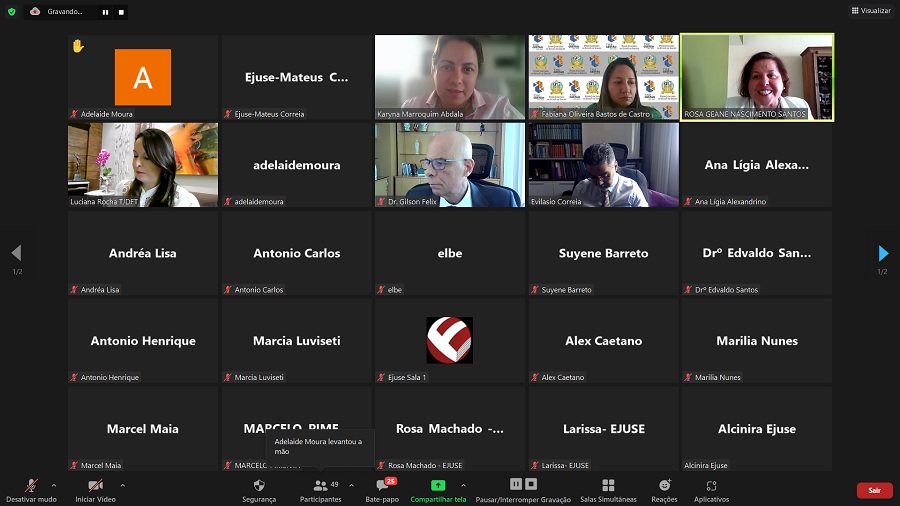 O curso, que foi idealizado e programado pela Ejuse em parceria com a Cevid do TJSE, teve início dia 4 de julho de 2022 por meio de videoconferência via plataforma Zoom, e prosseguiu nos dias 11, 15 e 25/07.