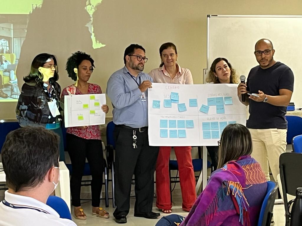 Ele ainda explicou o que é design thinking. “É uma outra forma de visualizar os problemas, priorizando a colaboração entre as pessoas, a criatividade e novas formas de pensar, onde não há limites para o pensamento, não há conceito de certo e errado. São elencadas todas as possibilidades de solução e, a partir daí, dentro da limitação da instituição, decide-se o que é possível aplicar”, esclareceu o Diretor de Inovação.