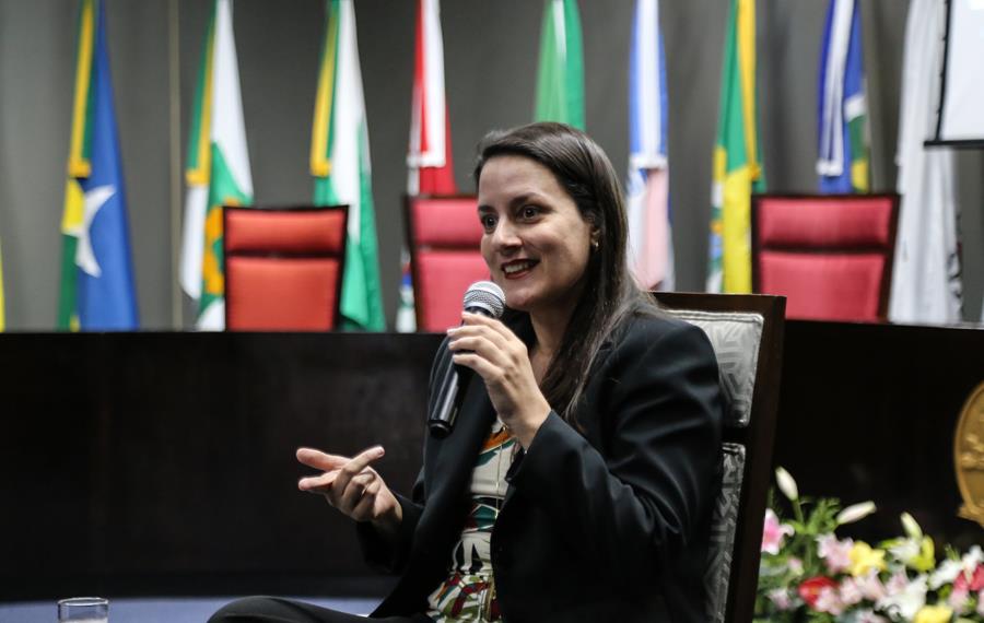 Referência nacional em estudos de gênero, a professora doutora Valeska Zanello discorreu sobre como a violência de gênero nasce, caracteriza-se e se propaga na sociedade brasileira. “Na nossa cultura, os homens aprendem a amar muitas coisas e as mulheres aprender a amar os homens. Usando a metáfora da prateleira do amor, as mulheres se subjetivam nessa prateleira, mediadas por um ideal estético construído historicamente no começo do século, da mulher branca, loura e magra. Quanto mais distante desse perfil, pior o seu lugar na prateleira e maior a chance de ser vista sob a ótica da objetificação sexual”, considerou a professora.
