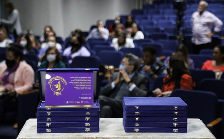 Foram homenageados os Desembargadores Edson Ulisses de Melo, Osório de Araújo Ramos Filho e Geni Schuster; as Juízas que já foram Coordenadoras da Mulher, Rosa Geane Nascimento, Iracy Mangueira, Adelaide Martins Moura e Isabela Santana; o Juiz Alício de Oliveira Rocha Júnior, Titular do Juizado de Violência Doméstica e Familiar contra a Mulher; toda a equipe da Coordenadoria da Mulher; o Centro de Apoio Operacional dos Direitos da Mulher do Ministério Público de Sergipe; o Núcleo Especializado de Promoção e Defesa do Direito da Mulher da Defensoria Pública de Sergipe; a Comissão de Defesa dos Direitos da Mulher da OAB/SE; e as Delegacias Especializadas de Atendimento à Mulher da SSP/SE.