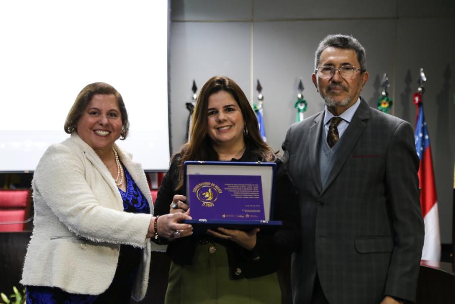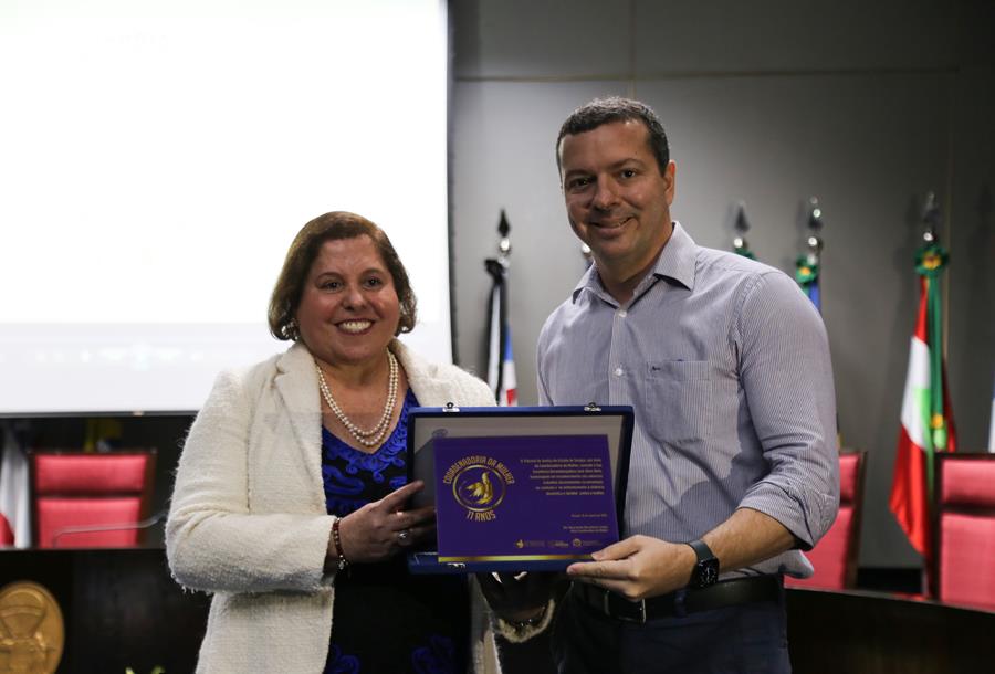 Ao final da solenidade, a Coordenadoria da Mulher do TJSE homenageadas (os) pessoas e órgãos que desenvolveram ações de prevenção e combate à violência doméstica e familiar. “É um dia para celebrar os 11 anos e todas as conquistas da Coordenadoria da Mulher do TJSE que foram muitas e importantes. Estamos homenageando pessoas e órgãos valorosos que fizeram parte da história da Coordenadoria da Mulher. Entre eles, os Desembargadores José Alves Neto, o Presidente que implantou a Coordenadoria da Mulher; Osório Ramos, que a estruturou fisicamente; e Edson Ulisses, que tem feito muito pela causa é um grande defensor dos direitos humanos das mulheres. Esperamos que essas homenagens se estendam posteriormente com um número maior de homenageados”, disse a Juíza Rosa Geane.