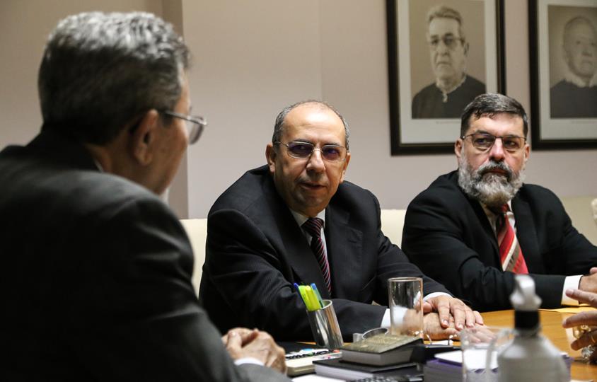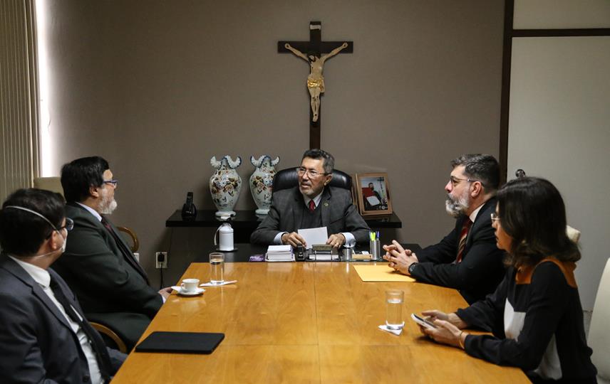 Nesta quinta-feira, dia 31, o Presidente do Poder Judiciário de Sergipe Des. Edson Ulisses de Melo recebeu o Corregedor do Tribunal de Justiça do Amapá (TJAP) Desembargador Agostino Silvério Júnior, que veio a Aracaju acompanhado do Juiz Auxiliar André Gonçalves e do Diretor de Secretaria Wellison Silva, ambos da Corregedoria do TJAP. Participaram do encontro, o Corregedor-Geral da Justiça Diógenes Barreto, o Juiz Auxiliar da Presidência Antônio Henrique dos Santos, o Juiz Roberto Alcântara, Presidente da Amase e a Secretária de Tecnologia Denise Moura.