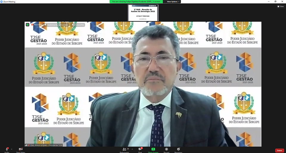 A 42ª Reunião de Análise da Estratégia (RAE), segunda do ano de 2022, foi realizada por viodeoconferência nesta sexta-feira, dia 02. O objetivo da RAEs é acompanhar o cumprimento das metas nacionais e dos 12 Macrodesafios no âmbito do Tribunal de Justiça de Sergipe, por meio do monitoramento e da avaliação da estratégia.