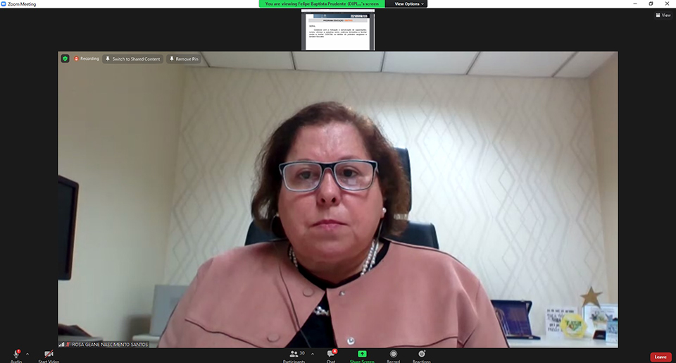 Foram apresentados projetos que integram o Plano de Gestão, com fito de se tornarem estratégicos no TJSE. O Programa Educação e o Programa Meu Alvo é a Paz, os quais estão alinhados ao Macrodesafio Garantia dos Direitos e Cidadania, cuja gestora é a Juíza Rosa Geane Nascimento foram expostos. A Psicóloga Sabrina Duarte, da Coordenadoria da Mulher, fez a explicação aos participantes da RAE, demonstrando o Programa Educação busca colaborar com a indicação e estruturação de capacitações, cursos, oficinas e palestras sobre violência doméstica e familiar contra a mulher com o público interno e também com os profissionais que integram a rede de proteção à mulher vítima. A Coordenadora da Mulher Rosa Geane falou sobre o Programa Meu Alvo é a Paz que tem por objetivo fomentar a articulação para a implementação de serviços especializados, bem como a criação de leis de enfrentamento e prevenção da violência contra a mulher. Foram apresentadas as ações desenvolvidas em ambos os Programas, a exemplo das capacitações com os órgãos de segurança pública, palestras em instituições públicas e privadas; as adesões à Campanha Sinal Vermelho; a implementação do Projeto Casa da Mulher em Sergipe; além do Centro de Educação e Reabilitação aos agressores, a qual a Coordenaria está em processo de articulação para implantação.