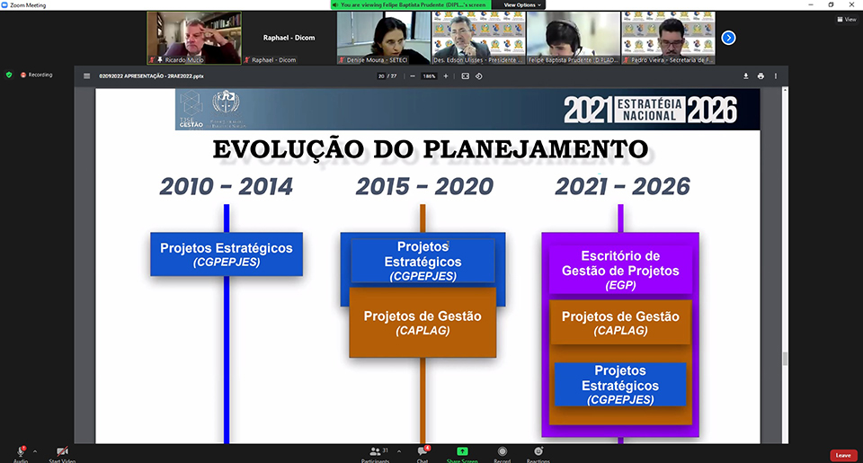 "Agradeço a todos, parabenizo as equipes pelo andamento dos projetos estratégicos. Nossas reuniões ocorrem de forma muito prática, produtiva, efetiva e progressista, pensando no futuro", encerrou o Presidente do Comitê Gestor, Des. Ricardo Múcio.