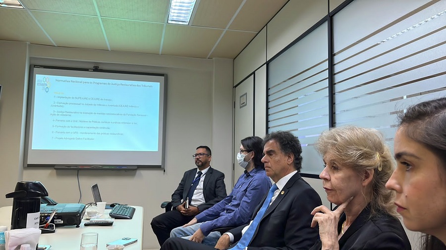 Representantes de outros Estados também acompanharam a visita do Ministro, a exemplo da Juíza Silvana Maria Parfieniuk, Coordenadora do Núcleo Permanente de Métodos Consensuais de Solução de Conflitos (Nupemec) do Tribunal de Justiça do Tocantins (TJTO); e Fredson Pinheiro, integrante da equipe Técnica do Centro de Justiça Restaurativa do Tribunal de Justiça do Acre (TJAC).