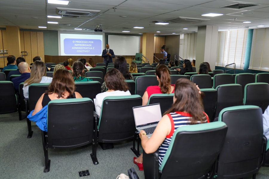 Com a participação de servidores e magistrados do Tribunal de Justiça do Estado de Sergipe (TJSE), a Escola Judicial de Sergipe (Ejuse) realizou, na tarde desta segunda-feira, 17/10, no auditório do Anexo I do TJSE, a palestra ‘Lei de Improbidade Administrativa: Aspectos Práticos e Polêmicos’. O ministrante foi o Promotor de Justiça do Rio de Janeiro, Doutorando e Mestre pela Università Degli Studi di Roma Tor Vergata, Fabrício Rocha Bastos. A Diretora da Ejuse, Desembargadora Iolanda Santos Guimarães, prestigiou o encontro.
