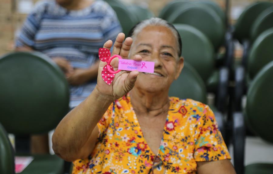 Logo no início das atividades, a Educadora Física Vânia Bastos foi voluntária e promoveu com as participantes uma sessão de alongamento. Em seguida, a artesã Williane Barbosa Santos trouxe um depoimento acerca do diagnóstico de câncer de mama que recebeu em março de 2022, aos 28 anos de idade e o tratamento que tem realizado nos últimos meses. Ela salientou a importância dos exames clínicos, bem como do autoexame.