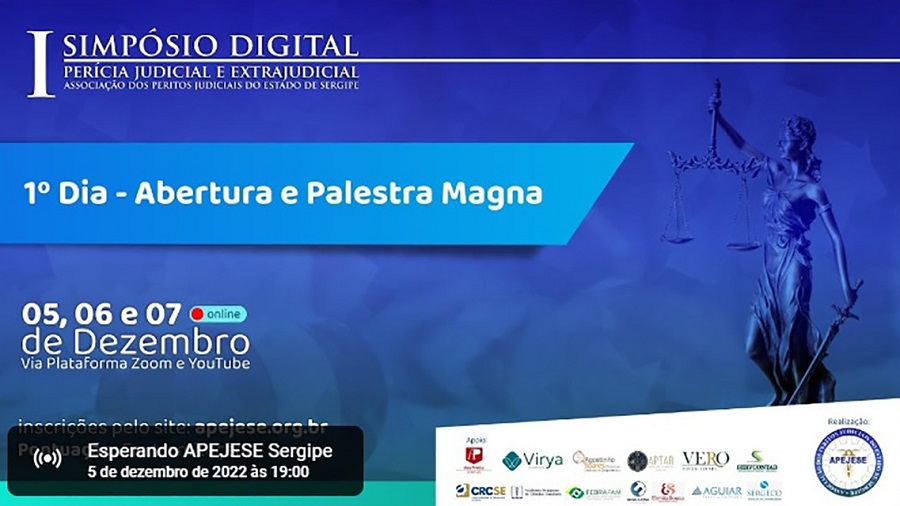 O simpósio tem como tema “Perícia Judicial e Extrajudicial: Desafios e Oportunidade na Profissão do Perito” e ocorreu de forma virtual com transmissão pelo YouTube da Apejese. Participaram representantes de conselhos e associações de profissionais que atuam como peritos em áreas como ciências contábeis, engenharia, arquitetos, psicologia, serviço social, médicos entre outros.