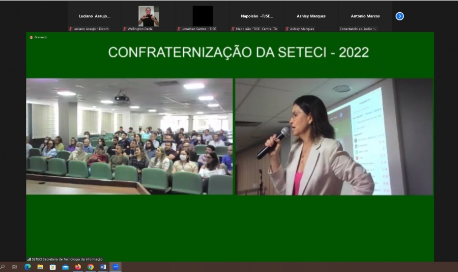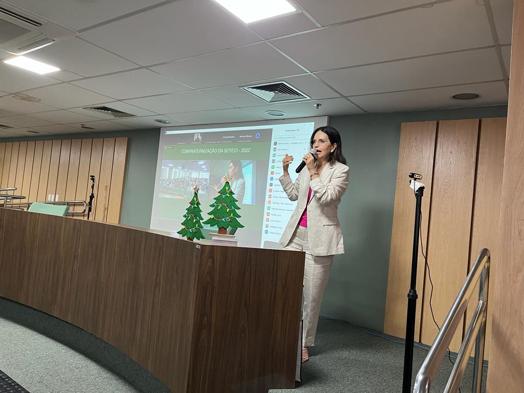 Segundo a Secretária de Tecnologia do TJSE, Denise Martins Moura Silva, que abriu o evento, o encontro de encerramento do ano da Seteci já é tradicional. “É um momento em que reunimos todos os colegas para, além de confraternizar, trazer assuntos relevantes para o debate, com intuito de fechar o ano e iniciar o novo clico com novas ideias. 2022 foi um ano de vitórias, com muitos projetos concluídos, a exemplo da instalação dos equipamentos que garantem a redundância dos sistemas, bem como a implantação do sistema da nova turma recursal, do cumprimento digital, do Conecte-se, do Codex. Parabenizo a gestão pelo apoio e a toda equipe pelo trabalho e dedicação de sempre”, finalizou a Secretária.