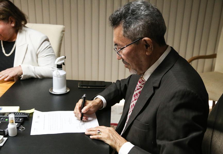 O Município de Riachão do Dantas assinou, na manhã desta quinta-feira, 15/12, na Presidência do Tribunal de Justiça de Sergipe (TJSE), um termo de adesão à campanha Sinal Vermelho, que tem como objetivo combater a violência doméstica e familiar contra a mulher. O termo foi assinado pela Prefeita Simone Farias, tendo como testemunhas o Presidente do Poder Judiciário, Desembargador Edson Ulisses de Melo; e a Juíza Rosa Geane Nascimento, Coordenadora da Mulher do TJSE. Já a adesão de Porto da Folha, aconteceu na última terça-feira.
