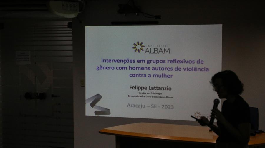A capacitação com o tema "Intervenções em grupos reflexivos de gênero com homens autores de violência contra a mulher" está sendo ministrada pelo Doutor em Psicologia Felippe Lattanzio, ex-coordenador geral do Instituto Albam, instituição credenciada na realização de cursos para implantação de grupos reflexivos, responsável também pela capacitação das equipes que atuam na Central de Alternativas Penais (CIAP).