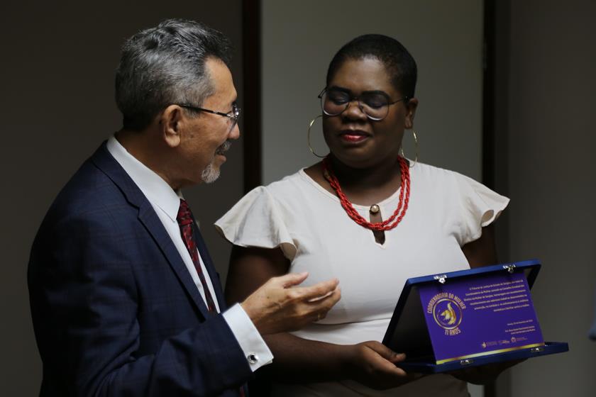 “É um dia de felicidade e realização de sonhos coletivos. Entramos para história do Judiciário brasileiro efetivando a Lei Maria da Penha no atendimento à mulher, com a Casa da Mulher Brasileira, ao assinarmos esse edital para construção. A Lei Maria da Penha sem efetivação é apenas uma lei. Com equipamentos de atendimento à mulher e a autores de violência, a lei é a concretização do que deve ser. Agradeço ao Presidente do Tribunal de Justiça que esteve presente conosco em todos os momentos e nos deu força para prosseguir nas fases mais difíceis”, considerou a Juíza Rosa Geane, que ao final do encontro presenteou os participantes com placas comemorativas ao aniversário de 11 anos da Coordenadoria da Mulher.