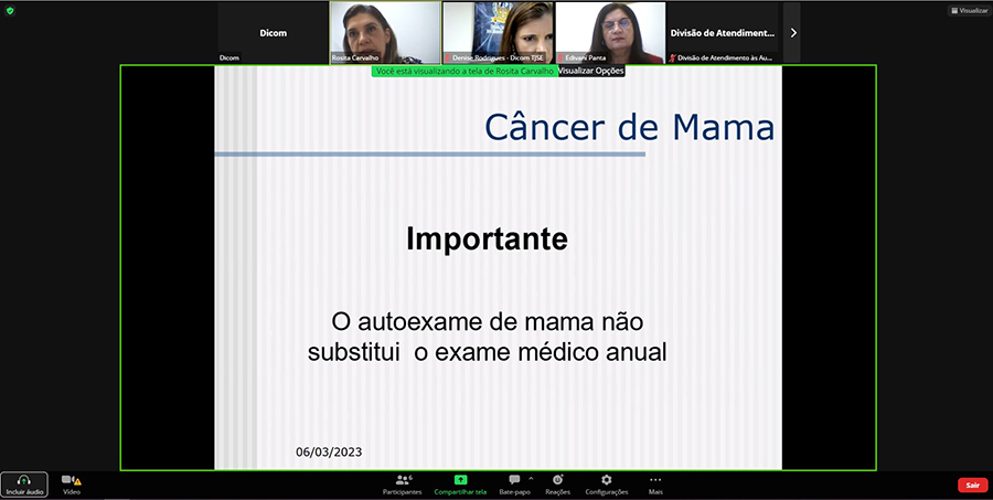 Para celebrar a Semana da Mulher, o Tribunal de Justiça de Sergipe, por meio do Centro Médico, deu início à programação festiva com uma palestra virtual. Transmitida pelo canal TJSE Eventos, no YouTube, a palestra, que ocorreu nesta segunda-feira, dia 06, abordou a temática “Saúde da Mulher, prevenção do câncer do colo uterino e mama”.