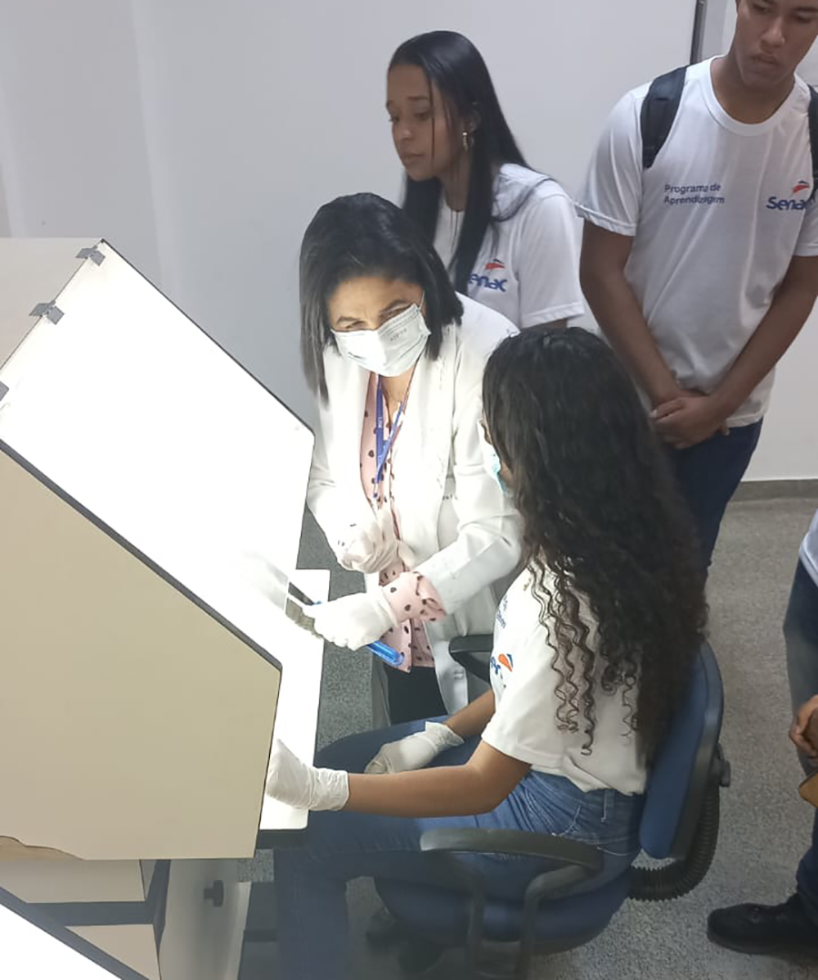 No laboratório, os estudantes conheceram os equipamentos e instrumentos utilizados para desinfestar, higienizar, mapear, intercalar, planificar e acondicionar documentos históricos. Os alunos manifestaram o encantamento com os procedimentos de restauro dos documentos.