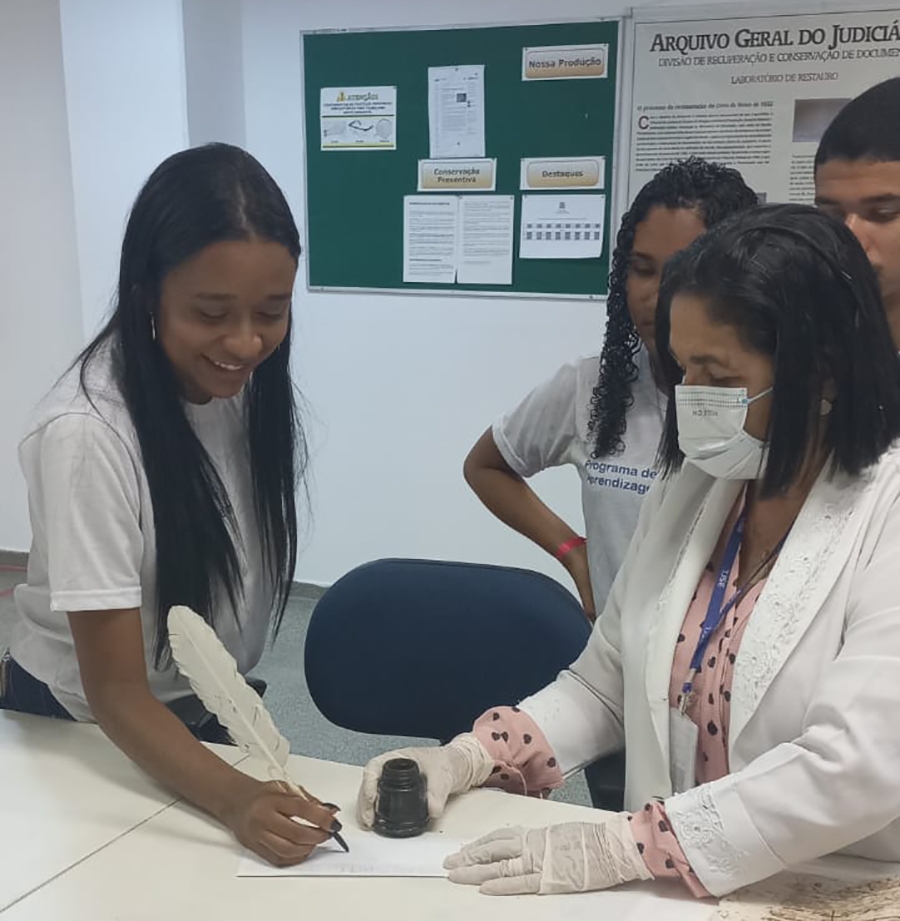 "Foi uma visita muito gratificante, na qual os alunos puderam conhecer o prédio do Arquivo Judiciário que guarda todo o acervo histórico do nosso Poder Judiciário e perceber todo o processo tecnológico usado no tratamento e digitalização desses documentos. Uma experiência muito rica e única na vida deles", ressaltou a responsável pelo Laboratório de Conservação Preventiva e Restauro, Vera Lúcia Souza de Carvalho, que junto ao servidor Anderson Renne Azevedo Silva, foi facilitadora da visita.