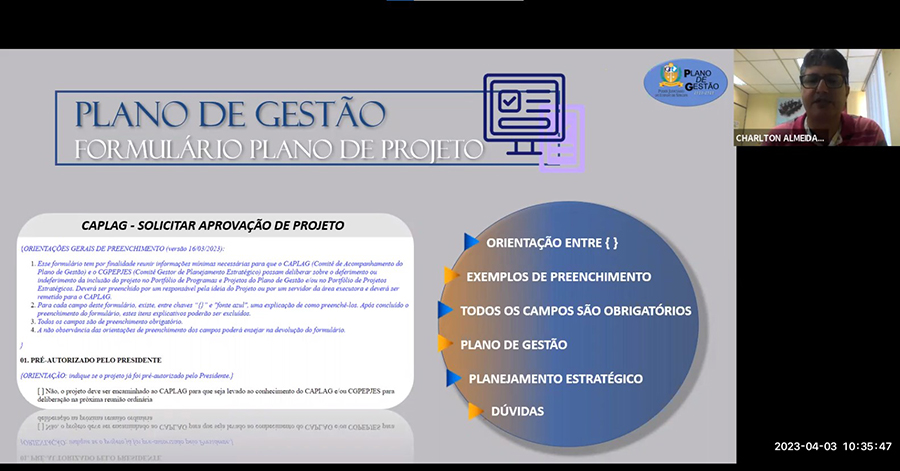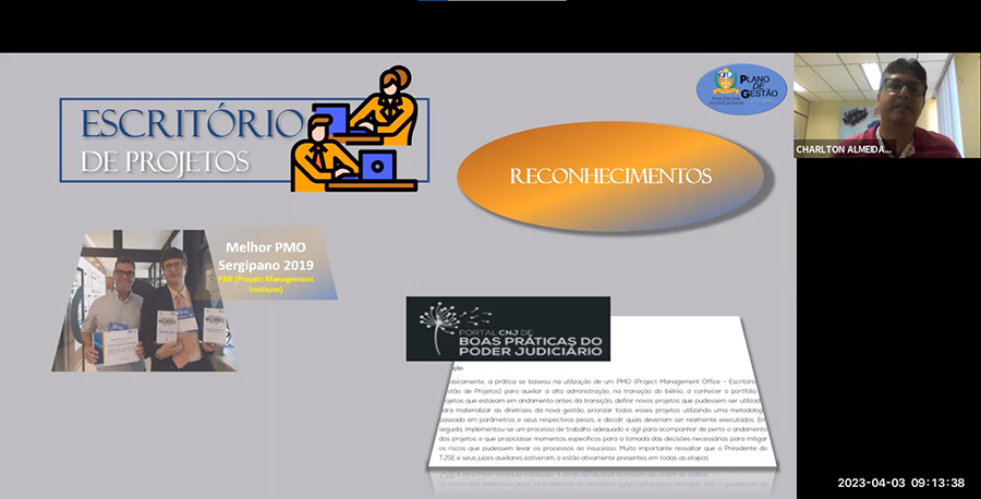 “O treinamento abriu os trabalhos do Comitê de Acompanhamento do Plano de Gestão (Caplag). Com os conhecimentos adquiridos, os participantes estão aptos a iniciar a elaboração do portfólio de programas e projetos que serão acompanhados pela Presidência do Tribunal de Justiça de Sergipe, no biênio 2023-2025. Sou grato pela confiança e pela oportunidade de poder ampliar a disseminação da cultura de Gestão de Projetos dentro da nossa instituição”, explicou o facilitador do treinamento Charlton Almeida, que é chefe da Divisão de Planos e Programas da Diretoria de Planejamento e Desenvolvimento.