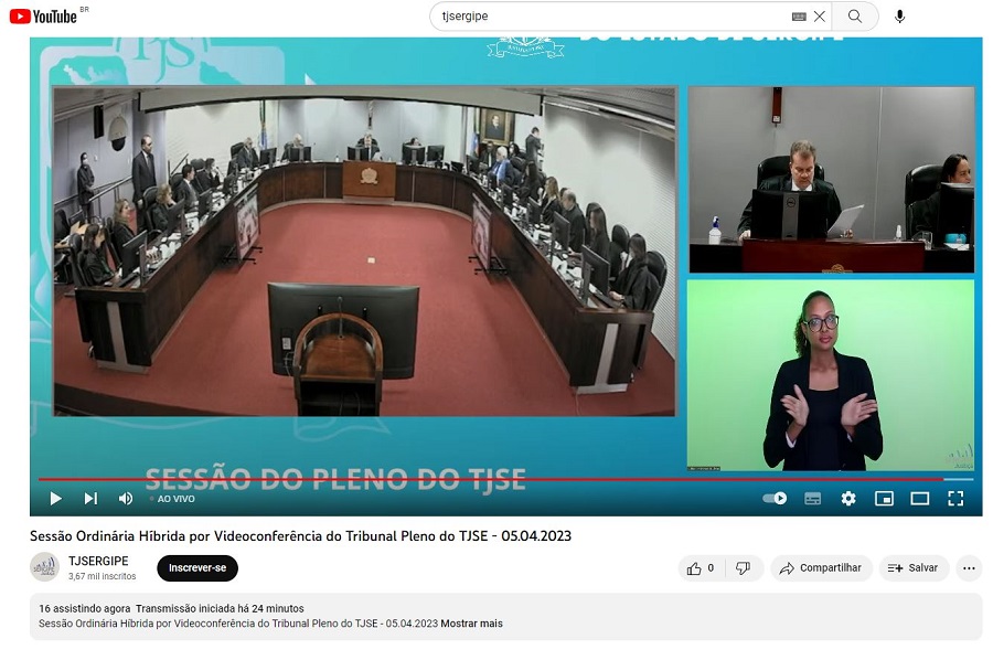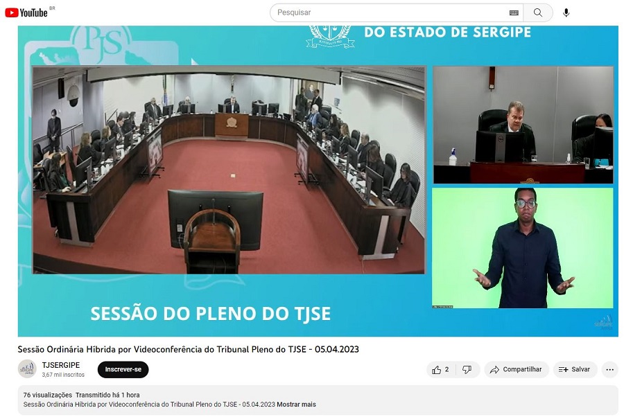 A sessão desta quarta-feira, 05/04, do Pleno do Tribunal de Justiça de Sergipe (TJSE) contou com uma novidade: a participação de intérpretes da Língua Brasileira de Sinais (Libras). A ação atende à Resolução 401, de 16/06/2021, do Conselho Nacional de Justiça (CNJ), que dispõe sobre as diretrizes de acessibilidade e inclusão de pessoas com deficiência nos órgãos do Poder Judiciário e de seus serviços auxiliares.