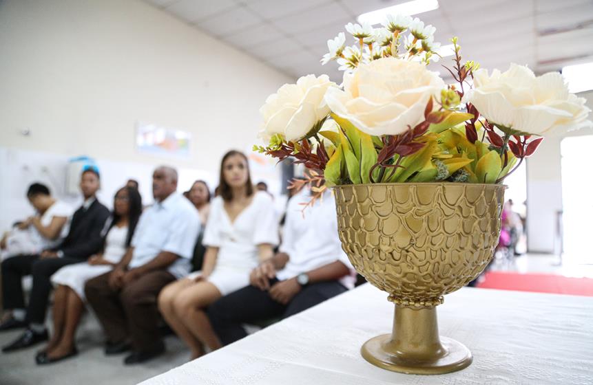 “É gratificante casar com uma pessoa que você gosta, que está do seu lado na vida para compartilhar tudo”. Foi assim que Gladstone Santos Mesquita, montador de móveis, definiu a emoção de casar com Yara Silva de Jesus, auxiliar pedagógica. Juntos há oito anos, eles foram um dos 20 casais que disseram o sim durante casamento comunitário organizado pelo Centro Judiciário de Solução e Conflitos e Cidadania (Cejusc) do Fórum Desembargador Pedro Barreto de Andrade, no conjunto Marcos Freire II, em Nossa Senhora do Socorro.