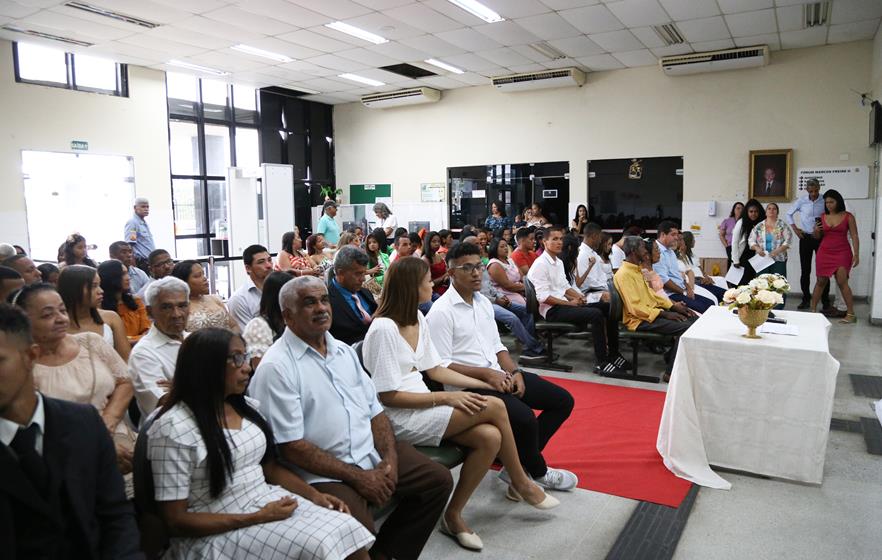 “Esse casamento coletivo foi uma iniciativa do Cejusc, abraçada pelo cartório extrajudicial do 3º Ofício de Socorro. Entendemos que é algo muito importante para os casais que não têm condições financeiras de arcar com o casamento civil”, explicou Ítalo Anselmo Santos, escrevente do cartório de registro civil extrajudicial do fórum. O primeiro casamento comunitário do Fórum Desembargador Pedro Barreto de Andrade aconteceu em novembro de 2022.