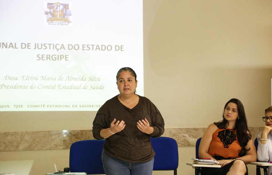 A presidente do Comitê de Saúde, desa. Elvira Maria de Almeida Silva, fez a abertura do workshop. “Estamos aqui com a equipe do NatJud, que é o principal componente do Comitê Estadual de Saúde, para tratarmos de processos referentes às demandas de saúde pública, conforme regulamento técnico do Conselho Nacional de Justiça. O objetivo desse encontro é um bate-papo entre os técnicos do Nat, responsáveis pela elaboração de Notas Técnicas, de caráter consultivo, e os assessores de desembargadores, para uma construção coletiva de saberes com um aprendendo com o outro, para uma troca de experiências através de uma metodologia ativa”, comentou a magistrada.