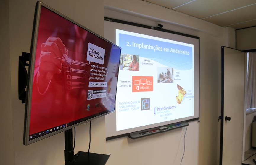 Os projetos que estão sendo implantados também foram apresentados, dando destaque ao aumento da velocidade dos links do interior, que traz consigo uma nova tecnologia de comunicação; os pilotos das comarcas com uso de 100% de notebooks; as ferramentas implantadas na Plataforma Digital do Poder Judiciário (PDPJ); a plataforma Office 365; e a migração do banco de dados utilizado pelo Sistema de Controle Processual (SCP) para o IRIS, que ocorrerá em junho desse ano.