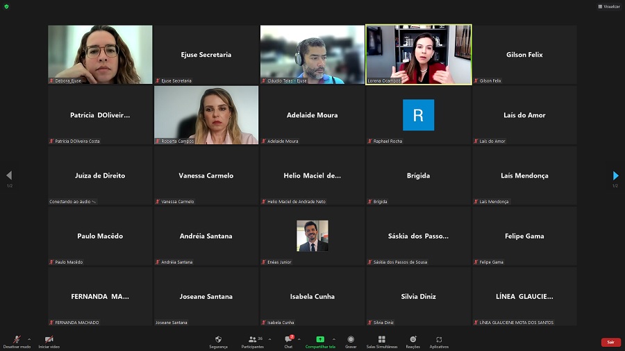 A Escola Judicial de Sergipe (Ejuse) realizou, na tarde de ontem, 26/06, a palestra intitulada "Audiência de Custódia: um debate prático e atual". De forma remota, por meio da plataforma de videoconferência Zoom, o evento contou com a participação de servidores e magistrados do Poder Judiciário sergipano.
