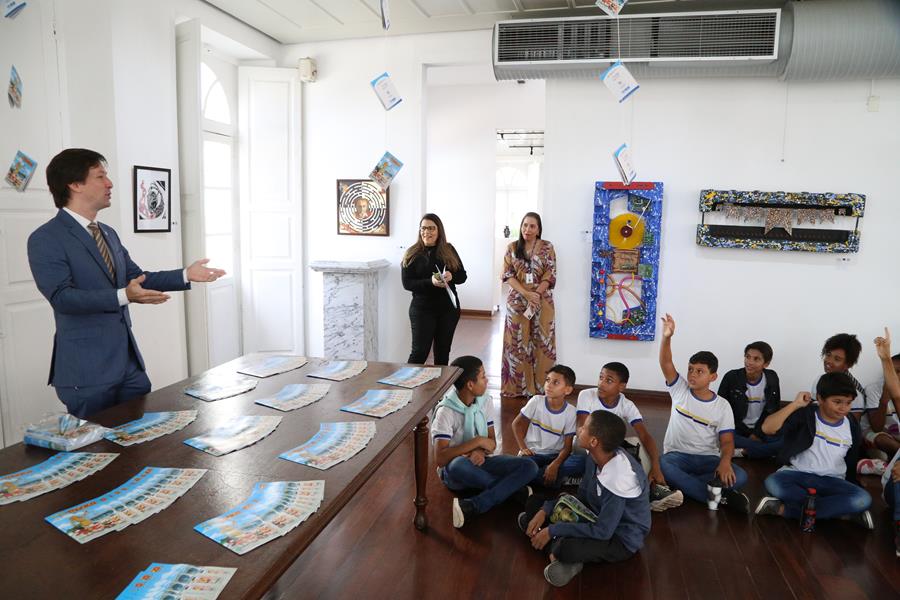Alunos da Escola Municipal Major João Teles, localizada no bairro Palestina, em Nossa Senhora do Socorro, estiveram no Memorial durante a distribuição do material didático. O Cejusc do Marcos Freire II realiza o projeto Escolas no Fórum, junto com a Secretaria de Educação de Socorro, iniciativa que foi estendida para o Memorial do Judiciário, a fim de incentivar a convivência do público infantojuvenil com o cotidiano e a história do Judiciário.