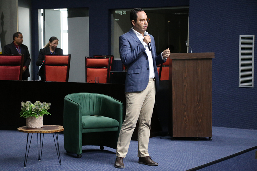 A última palestra da manhã teve como tema ‘Transversalidade do gênero’, ministrada por Thyago Avelino, secretário do Comeger, doutor em Ciências Jurídicas e Sociais e autor de 17 livros no âmbito do autoconhecimento. “Mostramos os outros vieses que remontam o gênero, a título da comunidade LGBTQIAPN+, incluindo as mulheres trans. Conforme julgado de abril de 2022, a Lei Maria da Penha deve ser aplicada também às mulheres transexuais. Além disso, falamos sobre identidade de gênero e orientação sexual para entendermos melhor esses termos”, ressaltou Thyago Avelino.