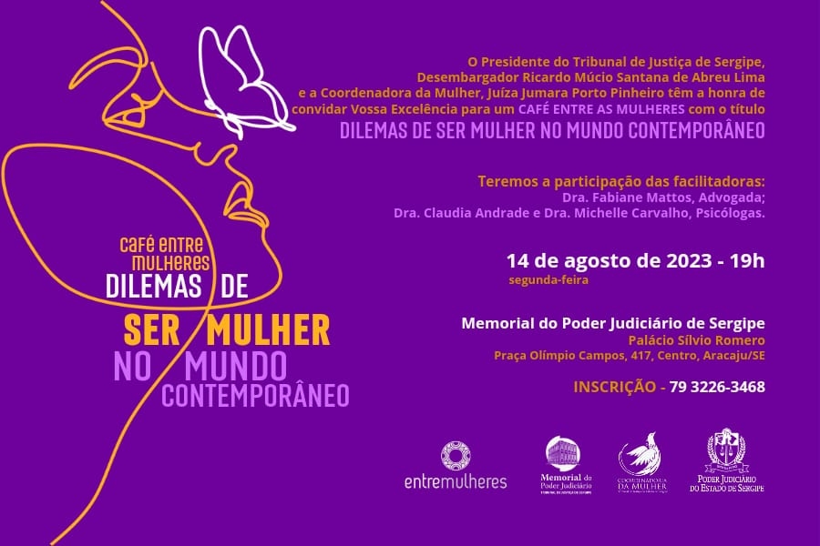 Em celebração ao Agosto Lilás, mês dedicado ao combate à violência contra a mulher, a Coordenadoria da Mulher do Tribunal de Justiça de Sergipe (TJSE) e o Memorial do Judiciário vão realizar uma discussão sobre os dilemas de ser mulher no mundo contemporâneo. O ‘Café entre Mulheres’ acontecerá na próxima segunda-feira, 14/08, às 19 horas, no Palácio Silvio Romero, localizado à Praça Olímpio Campos, Centro de Aracaju.