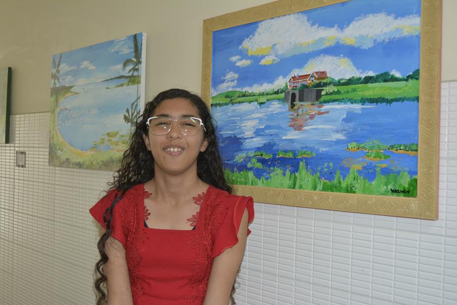 Com apenas 15 anos, Yamin Frazão foi a artista mais jovem a participar da exposição. Ela lembrou de quando começou nas artes plásticas e da oportunidade de já estar com suas obras no Arte no Cejusc. “Sempre desenhei e com 12 anos iniciei na pintura, mas estar aqui hoje é uma emoção muito grande”, comemora.