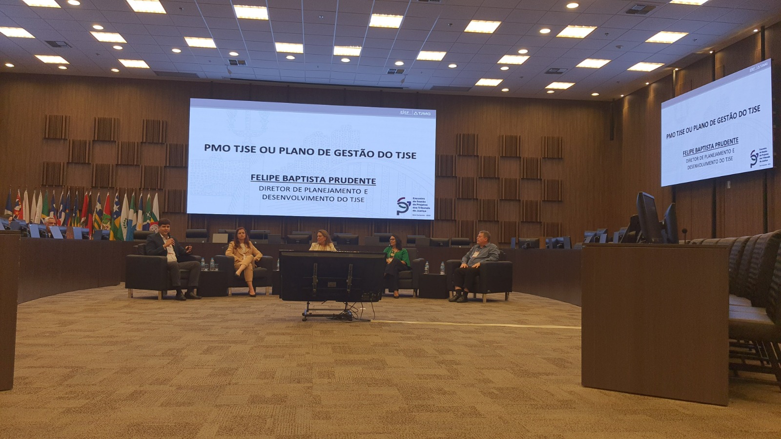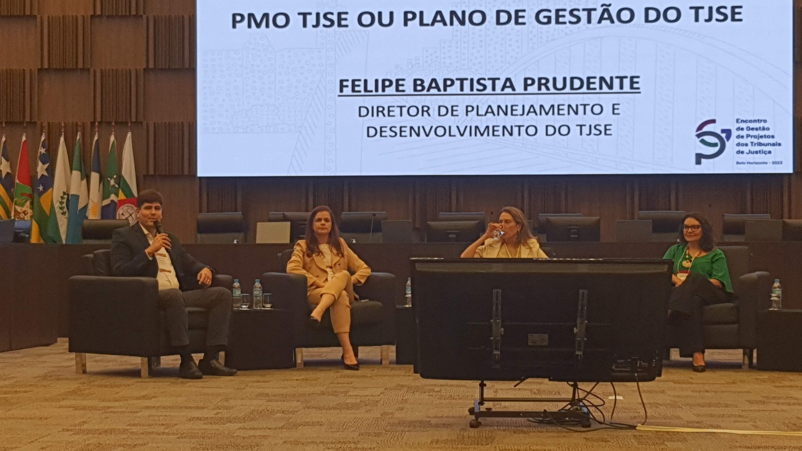 O diretor de Planejamento e Desenvolvimento do TJSE, Felipe Baptista Prudente, foi um dos convidados para o painel “Boas Práticas de Gestão de Projetos”. Na oportunidade, ele pôde compartilhar um pouco das práticas exitosas desenvolvidas dentro da Corte sergipana que tornam o TJSE um dos mais eficientes do país, chegando a 100% no Índice de Produtividade Comparada (IPC-Jus) aferido pelo CNJ.