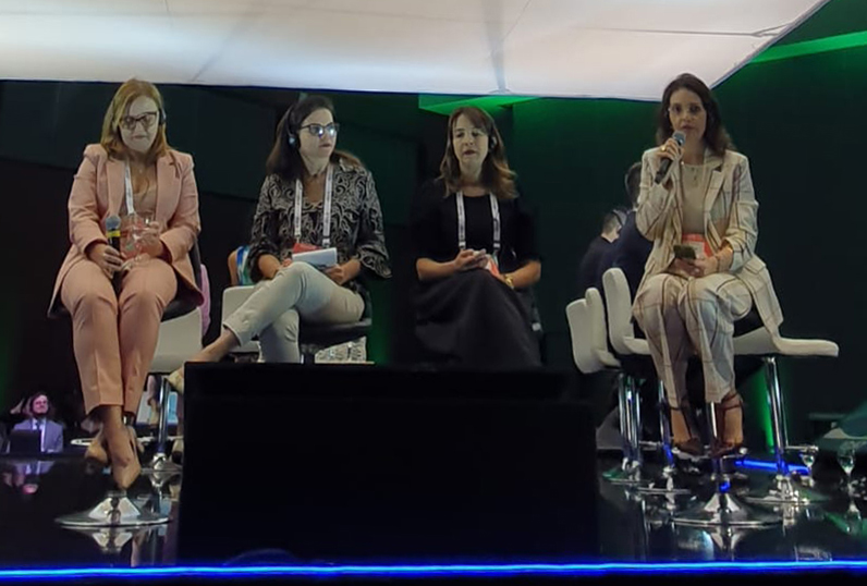 No palco 360º, espaço para as palestras inovadoras, a secretária de Tecnologia, Denise Martins, mediou na quarta-feira, dia 25, a mesa com o tema "Importância do uso de dados na Justiça". Deste painel participaram Fernanda Montenegro, diretora de Tecnologia da Informação do Tribunal Regional Federal da 5ª Região (TRF5), Ana Luísa Carneiro, diretora de Tecnologia da Informação do TRF da 2ª Região (TRF2) e Marcela Maria Novais, juíza auxiliar da Presidência do Tribunal de Justiça do Estado de Minas Gerais (TJMG).