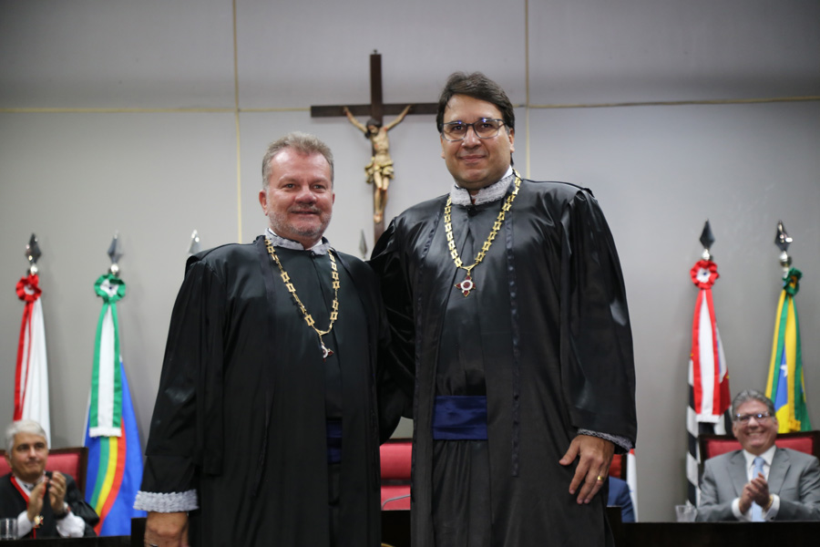 Após prestar juramento, o novo desembargador assinou o termo de posse e recebeu o Colar do Mérito Judiciário, honraria concedida a pessoas que prestam relevantes serviços à Justiça. Em seguida, o desembargador Edivaldo dos Santos saudou o colega e contou que o conheceu em 2003, quando era juiz da Comarca de Lagarto e Etélio o promotor de Justiça. “A jovialidade era a marca estampada em seu semblante, todavia, logo nos primeiros atos, percebeu-se que aquele jovem carregava um enorme senso de zelo no exercício de sua função”, lembrou.