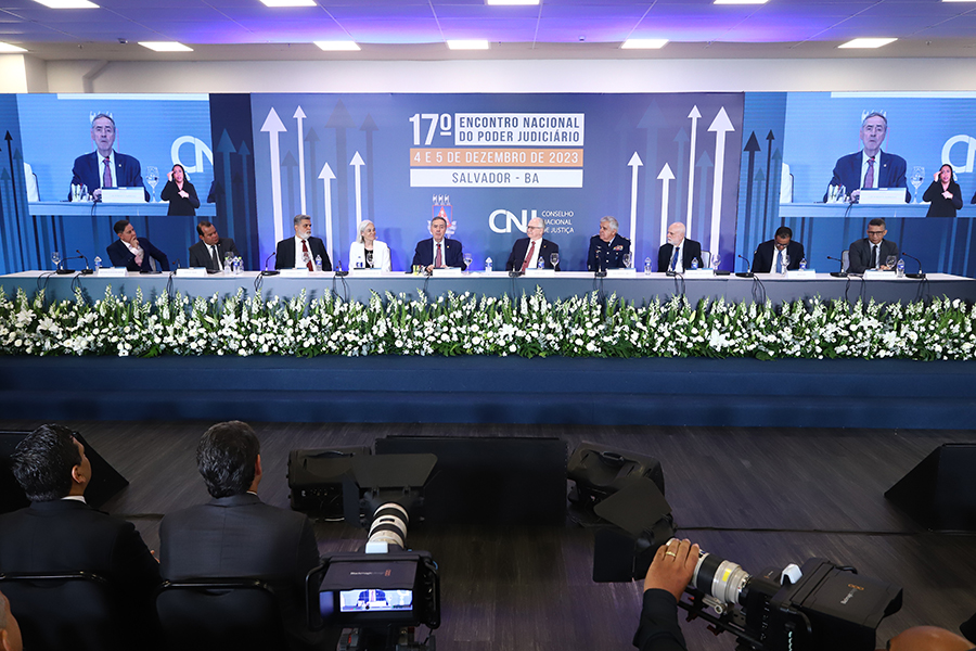 O Encontro Nacional do Poder Judiciário foi aberto, ontem à noite, pelo presidente do Supremo Tribunal Federal (STF) e do CNJ, ministro Luís Roberto Barroso, que falou sobre ‘Magistratura, eficiência do Poder Judiciário e uso das tecnologias’. “Eu tenho muito orgulho de ser, por esse biênio, o presidente do Poder Judiciário e poder coordenar, por assim dizer, os 18.000 juízes brasileiros que, na sua grande maioria, cumprem com grande empenho, com grande abnegação, esse trabalho árduo que é ser juiz num país como o Brasil”, disse.