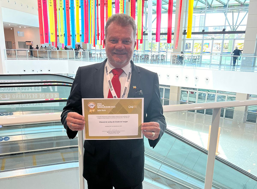 O Conselho Nacional de Justiça anunciou, na manhã desta terça-feira, 05/12, em Salvador (BA), os vencedores do Prêmio CNJ de Qualidade 2023, durante o 17º Encontro Nacional do Poder Judiciário. Mais uma vez, o Tribunal de Justiça de Sergipe (TJSE) conquistou o Selo Ouro, passou do décimo para o sexto lugar geral, entre todos tribunais estaduais, com índice de avalição que subiu de 68,31% para 81,5%. A premiação avalia os Tribunais sob o olhar do acompanhamento das políticas judiciárias, eficiência, gestão e organização de dados.