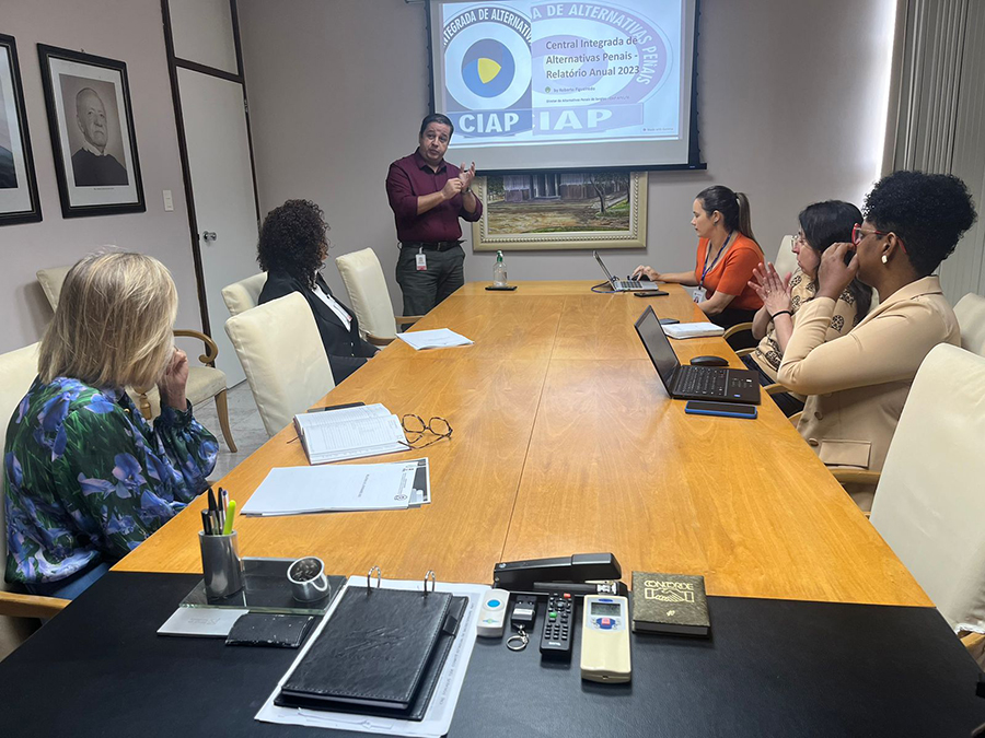 Na terça-feira, dia 12/12, representantes da Central Integrada de Alternativas Penais (Ciap) e do Escritório Social apresentaram ao Grupo de Monitoramento e Fiscalização do Sistema Carcerário (GMF), representado pela juíza-corregedora, Brígida Declerck Fink, e pela assistente técnica do Programa Fazendo Justiça CNJ/PNUD, Glória Ventapane, os dados referentes às atividades desenvolvidas durante todo o ano de 2023, bem como o plano de ação para 2024.