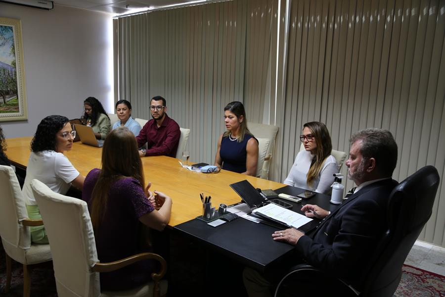 Em reunião, nesta segunda-feira, dia 18, o presidente do Tribunal de Justiça de Sergipe, des. Ricardo Múcio Santana de Abreu Lima e as juízas Dauquíria Ferreira, auxiliar da Presidência, e Jumara Porto, coordenadora da Mulher, receberam a secretária de Estado, Érica Mitidieri, e representantes da Assistência Social que atuam como gestores nos Municípios do interior, no Conselho Estadual de Assistência Social e no Colegiado Nacional de Gestores Municipais de Assistência Social.