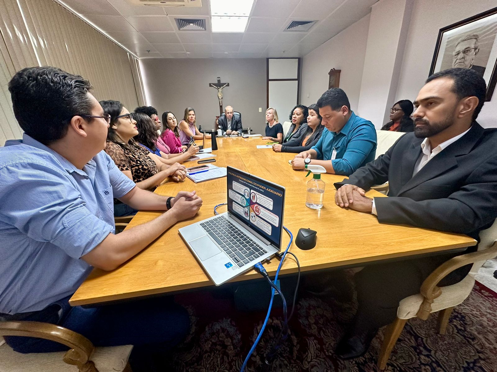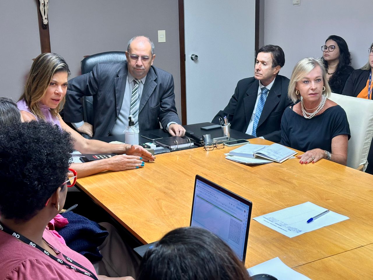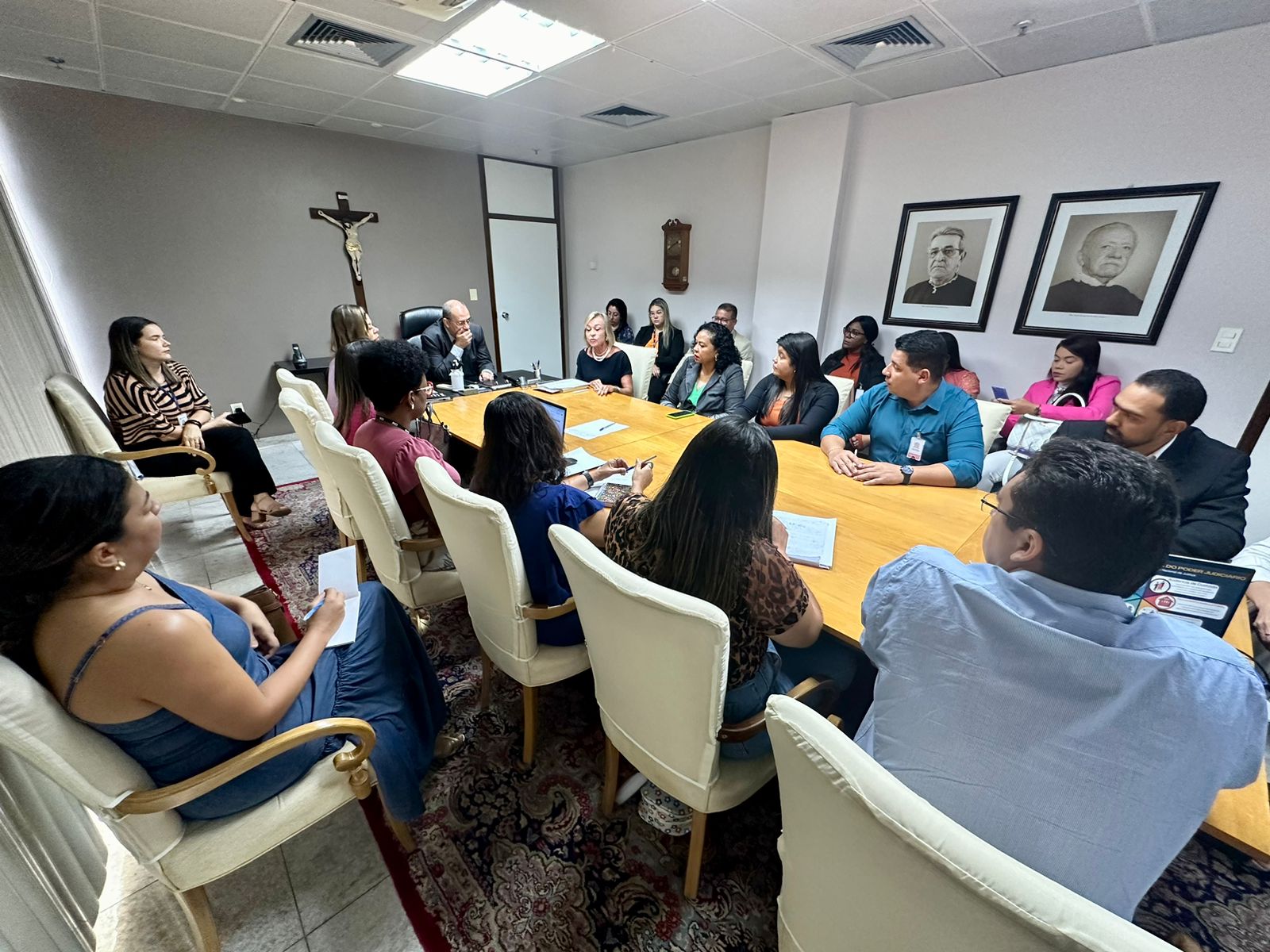 A reunião foi conduzida pelo Desembargador Diógenes Barreto, supervisor do GMF/TJSE, e contou com a presença também da juíza auxiliar da presidência, Dauquíria de Melo Ferreira, da juíza-corregedora, Brígida Declerc Fink, ambas membros do GMF/TJSE, da assistente técnica do PNUD/CNJ responsável pelas ações no campo penal, Glória Maria Vieira, da secretária estadual da Justiça e Defesa do Consumidor, Viviane, dentre outros representantes da rede.