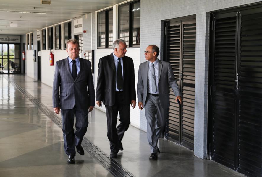 O presidente do Tribunal de Justiça do Estado de Sergipe (TJSE), desembargador Ricardo Múcio Santana de Abreu Lima, realizou nesta terça-feira, 23 de janeiro, uma visita às dependências do Fórum Gumersindo Bessa, em Aracaju. Ao lado do juiz auxiliar da Presidência, Gustavo Plech, o presidente foi recepcionado pelo juiz-diretor do fórum, Rômulo Dantas Brandão, e por magistrados como Jair Teles da Silva Filho (designado/6ª Vara Cível) e Sérgio Menezes Lucas (titular/1ª Vara Cível).