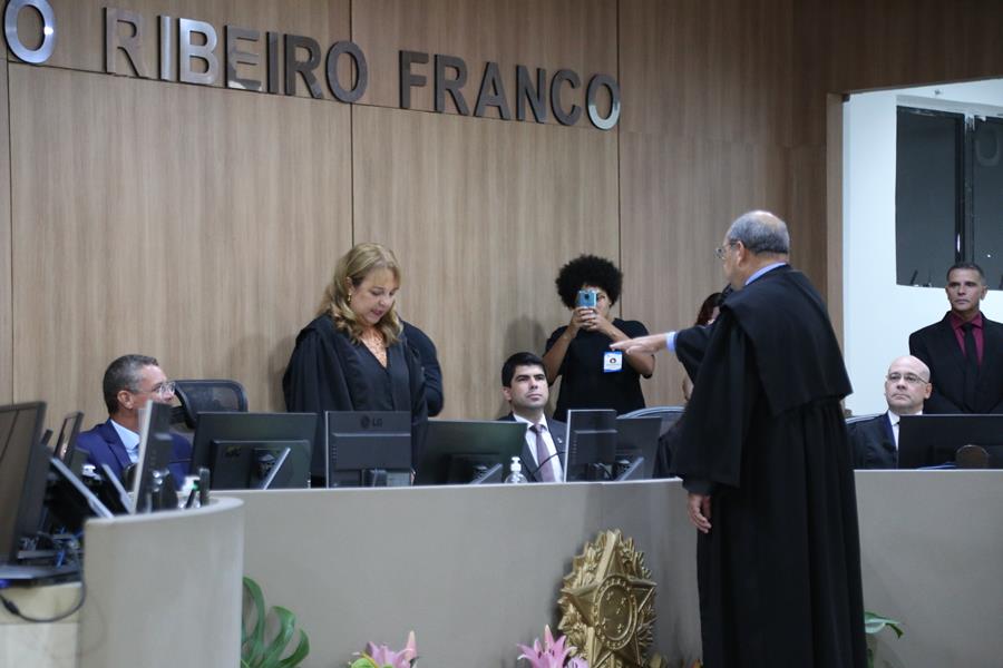 Ocorreu nesta sexta-feira, dia 23, a solenidade de posse do desembargador Diógenes Barreto como presidente do Tribunal Regional Eleitoral de Sergipe (TRE/SE) para o biênio 2024-2026 e da juíza Dauquíria de Melo Ferreira como membro titular da Corte. A sessão foi presidida pela desembargadora Ana Lúcia Freire de Almeida dos Anjos, vice-presidente e corregedora-geral do TRE, a quem coube o discurso de boas-vindas.
