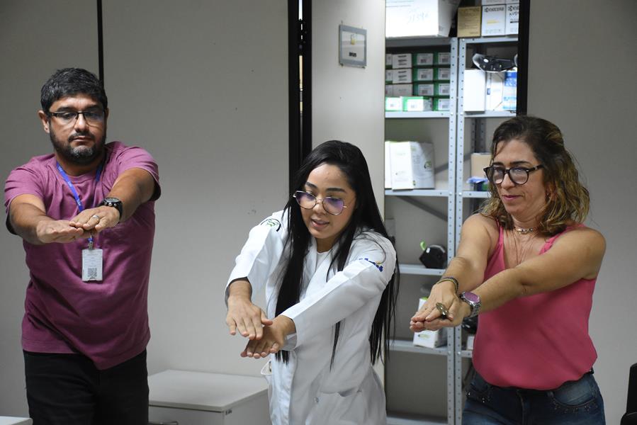 Para a Ginástica Laboral, uma equipe de estudantes do 10º período de Fisioterapia da Universidade Tiradentes (Unit) conduziu as atividades, supervisionados pela professora Thais Barreto. Este é um projeto que o Centro Médico do TJSE desenvolve em parceria com a Unit e tem levado para servidores de diversas unidades jurisdicionais orientações ergonômicas, visando melhorar a qualidade de vida do público interno.