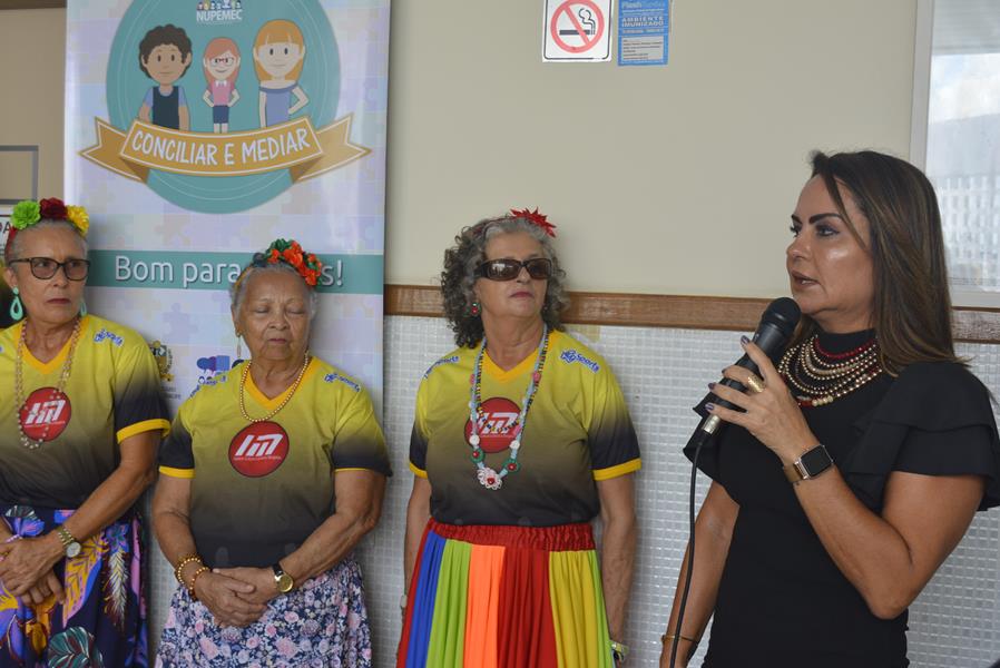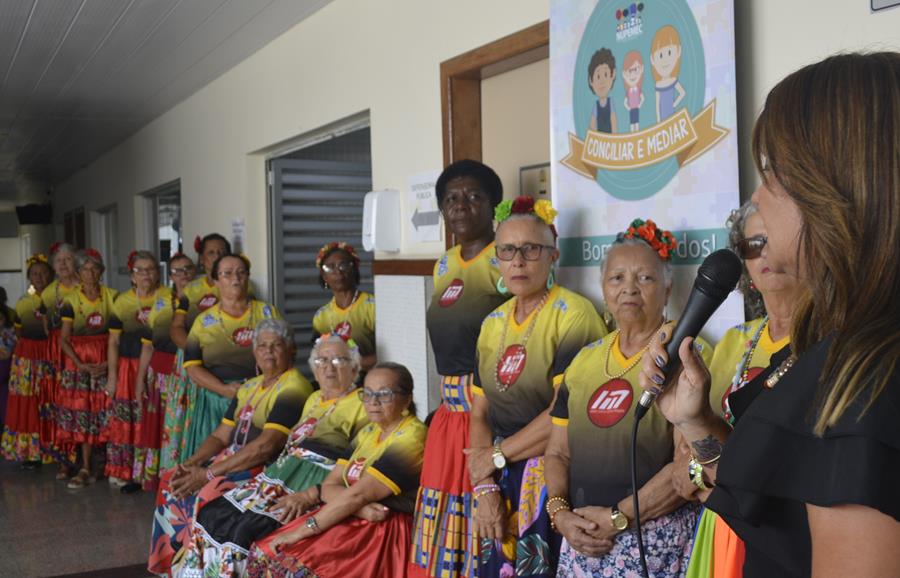 Seguindo no contexto do Mês da Mulher no Tribunal de Justiça de Sergipe (TJSE), o Centro Judiciário de Solução de Conflitos e Cidadania (Cejusc) do Fórum Des. Artur Oscar de Oliveira Deda, na sede de Nossa Senhora do Socorro, realizou nesta terça-feira, 12 de março, uma programação especial de conscientização sobre violência doméstica e familiar. Além de palestra com a juíza coordenadora da Mulher do TJSE, Jumara Porto, as ações incluíram a exposição fotográfica “Colorindo a Dor”, samba de roda com as Sambadeiras e apresentação teatral do Projeto Sociocultural Mangaliza.